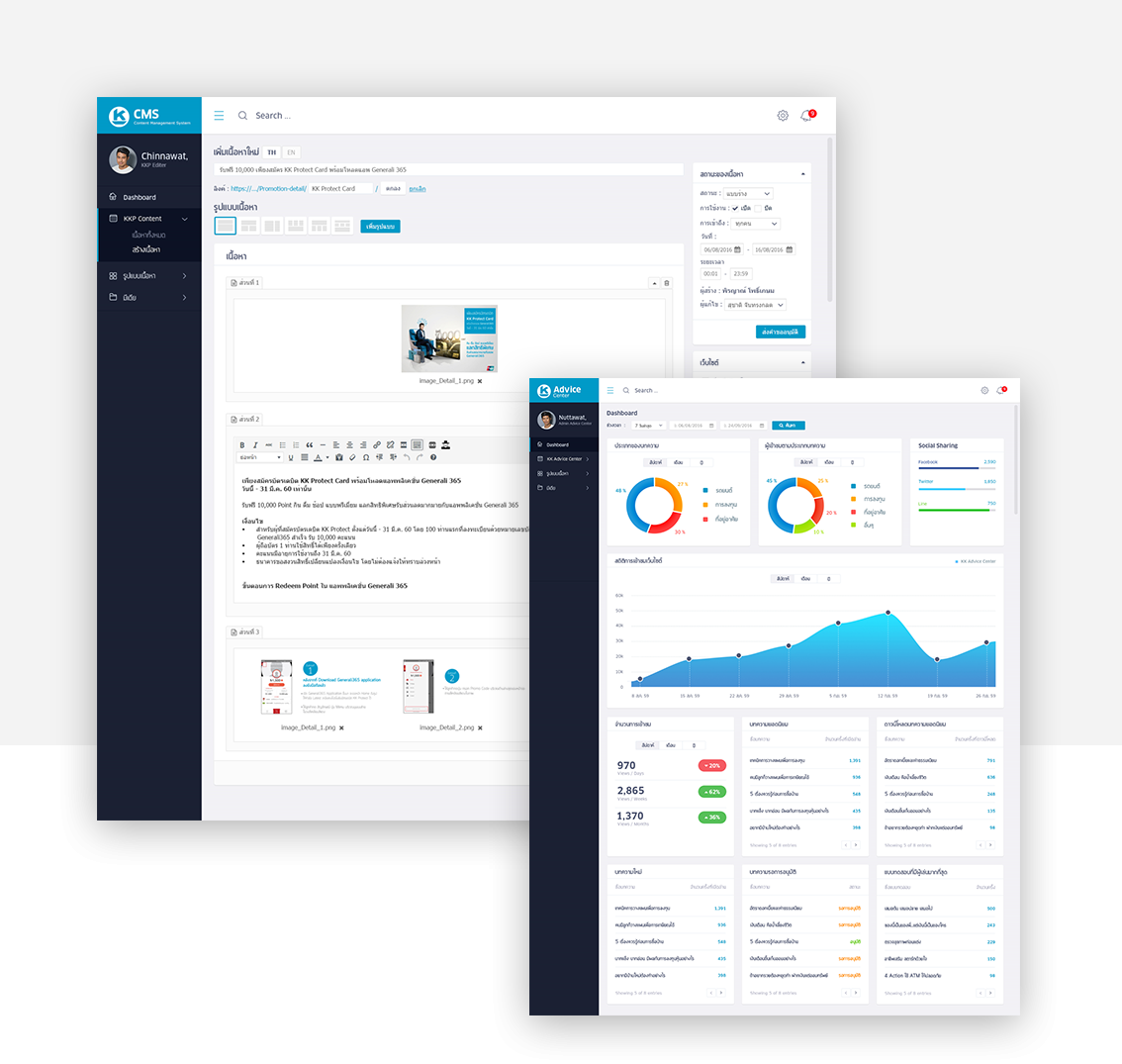 เป็นระบบที่ใช้ในการจัดการการทำงานที่เกี่ยวข้องกับข้อมูลต่างๆ ภายในเว็บไซต์ ซึ่งระบบรองรับการจัดการข้อมูลเว็บไซต์ธนาคารเกียรตินาคิน และเว็บไซต์ภายในเครือ โดยมีฟังก์ชันที่พัฒนาขึ้นมาเฉพาะ ตอบโจทย์ทุกความต้องการของผู้ใช้งาน เป็นเครื่องมือที่มีฟังก์ชัน User Accessibility Control ที่สมบูรณ์ สามารถเข้าใช้งานได้จากทุกบริษัทในกลุ่ม ลดการทำงานที่ซ้ำซ้อน และสะดวกต่อการใช้งาน