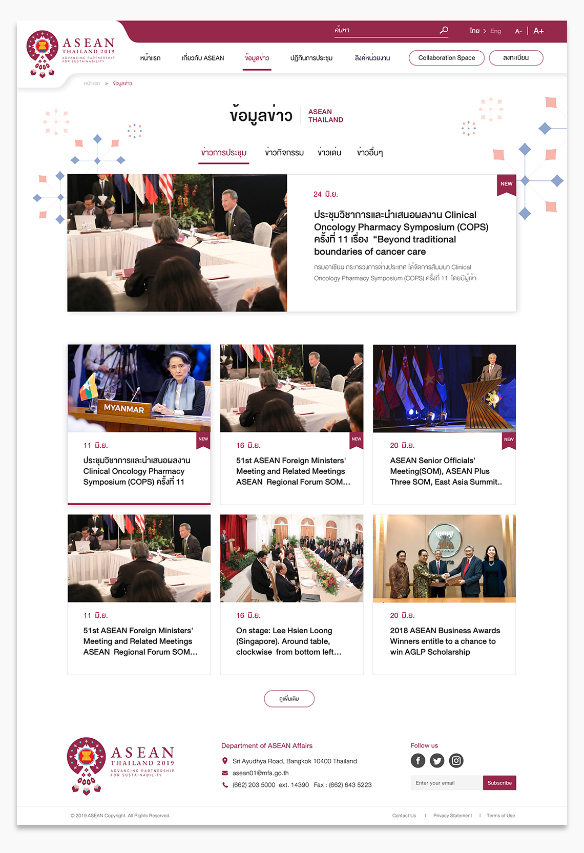 เนื่องจากในปี 2019 ประเทศไทยเป็นเจ้าภาพในจัดการประชุม ASEAN 2019 ทาง บริษัท คลิกเน็กซ์ จำกัด มีความยินดีเป็นอย่างยิ่งที่ได้รับเลือกจากกระทรวงการต่างประเทศให้เป็นผู้พัฒนาระบบเว็บไซต์ ระบบลงทะเบียนผู้เข้าร่วมประชุม และ Mobile Application สำหรับผู้เข้าร่วมประชุม