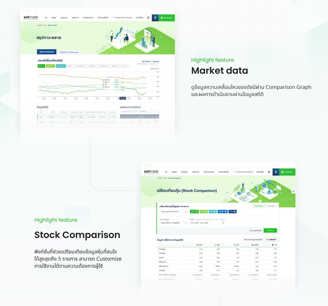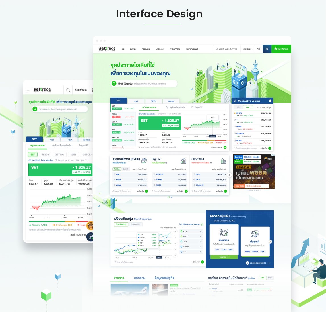 บริษัท เซ็ทเทรด ดอท คอม จำกัด(www.settrade.com) ได้มีการการออกแบบและพัฒนาเว็บไซต์ใหม่ โดยมุ่งเน้นให้เว็บไซต์ เป็นศูนย์กลางการเผยแพร่ข้อมูลที่เป็นประโยชน์กับนักลงทุน ผู้สนใจลงทุน และคนทั่วไปที่กำลังสนใจเกี่ยวกับเรื่องลงทุน โดยปรับปรุงเนื้อหาเว็บไซต์ และรูปแบบการนำเสนอข้อมูลใหม่ พร้อมพัฒนาเครื่องมือที่ช่วยให้นักลงทุนสามารถวิเคราะห์ข้อมูลได้อย่างมีประสิทธิภาพ และเพิ่มโอกาสในการลงทุนให้กับนักลงทุนได้อย่างสูงสุด
