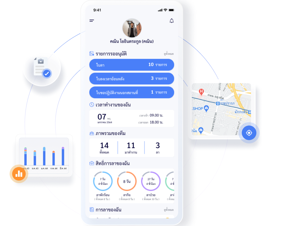 ฝ่ายบุคคลสามารถตรวจสอบจุดเช็คอิน ของพนักงานจากพิกัด GPS ว่ากดเข้า - ออกงาน จากที่ทำงาน หรือที่บ้าน นอกจากนี้ยังแนบรูปถ่ายยืนยันได้อีกด้วย